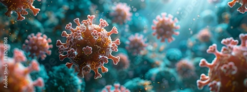 © Usman, Fototapeta premium A high-resolution micrograph of virus particle with the spherical core and spiky protein envelope clearly visible