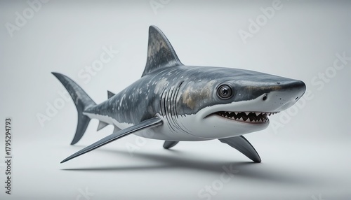 Naklejka premium A high-resolution realistic great white shark image featuring sharp details,...