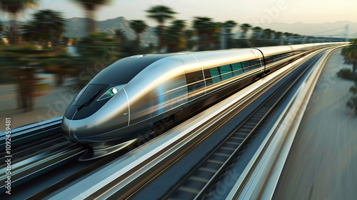 Fototapeta premium A high-speed maglev train racing along its track, leaving behind a blur of motion as it accelerates.
