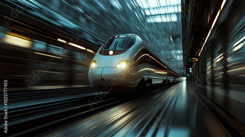 © Daniel, Fototapeta premium a high speed train entering a train station.