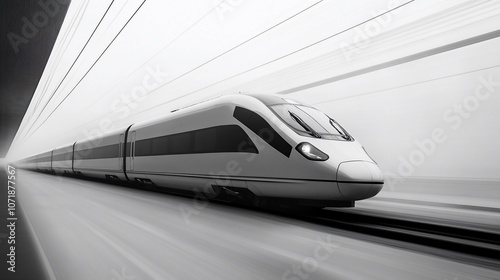 Fototapeta premium A high-speed train moving through a tunnel with a blurred background.