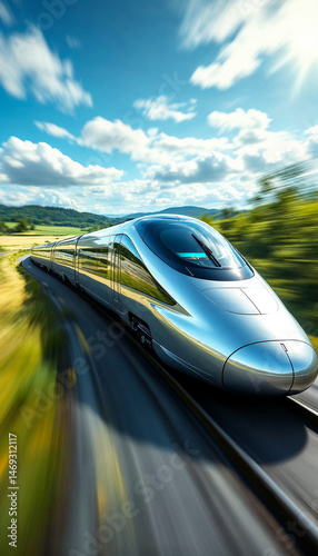 © abu, Obraz premium a high-speed train racing through a blurred landscape, emphasizing speed.