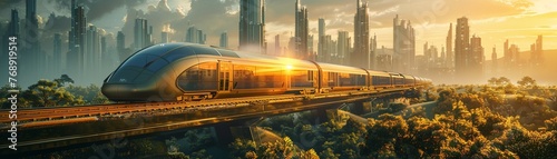 Naklejka premium A high-speed train slicing through a futuristic landscape blurring the lines...