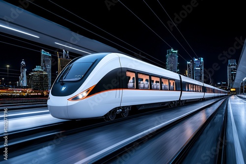 Naklejka premium A high-speed train with vibrant light trails zips by quickly. Smart...