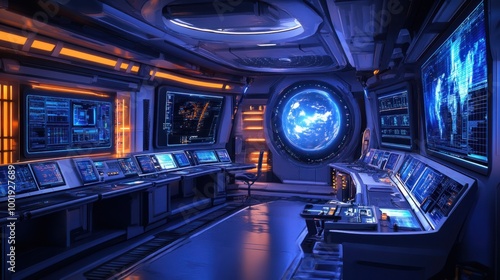 Obraz premium A high-tech control center inside a space station, where scientists analyze...