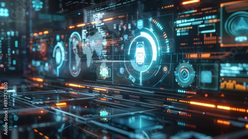 © Ibad, Obraz premium A high-tech 3D rendering of a system update in progress on a transparent screen