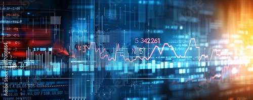 Obraz premium A high-tech digital background with a colorful analytics dashboard, promoting...