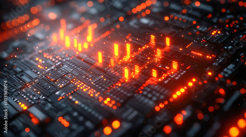 Obraz premium A high-tech digital interface displaying illuminated red data charts and...