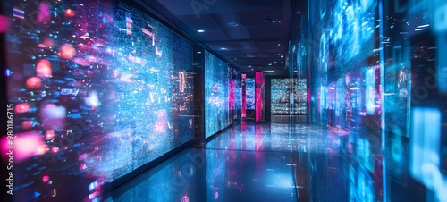 © Mr image, Obraz premium 5. "A high-tech environment where holographic numbers reflect vibrant colors and dynamic light effects
