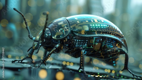 Fototapeta premium A high-tech futuristic bug designed with the characteristics of a digital...