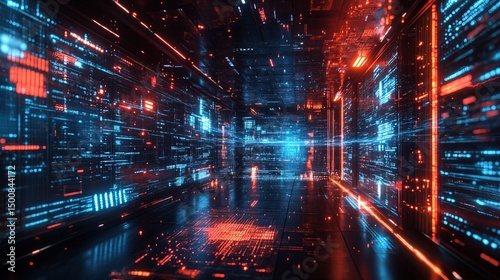 © SyabilaSyifa, Obraz premium A high-tech quantum computer running complex simulations, surrounded by holographic data streams
