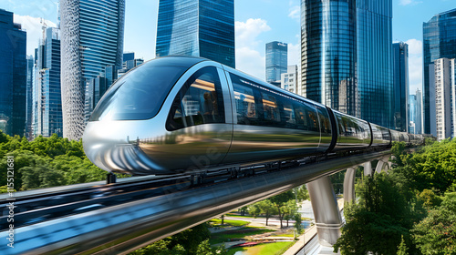 Naklejka premium A high-tech urban monorail system gliding through a futuristic cityscape with...
