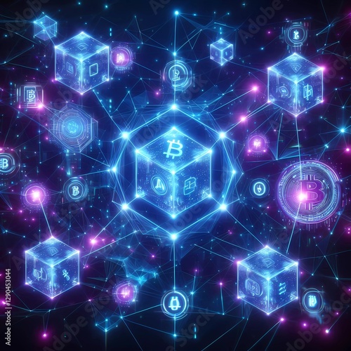 © JY, Obraz premium A high technology futuristic abstract virtual financial analysis artificial intelligence big data web3 block chain technology background