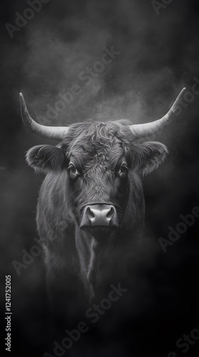 Naklejka premium A highland cow with long, shaggy hair and large horns