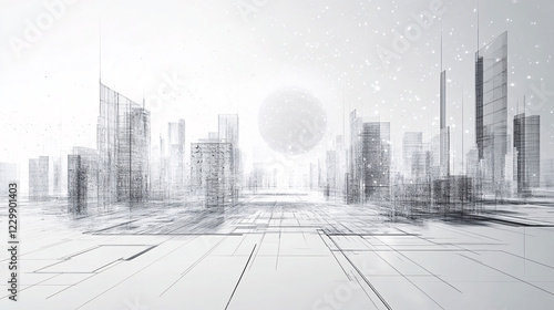 Fototapeta premium A highly detailed digital wireframe cityscape with futuristic skyscrapers and...