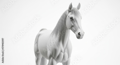 © budi, Obraz premium A highly detailed, realistic 3D render of a white horse standing against a plain white background.