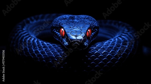 Fototapeta premium A highly realistic photograph of a deep blue snake, its smooth scales...