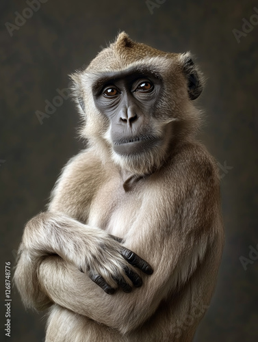 © Studio F., Obraz premium A highly stylized monkey bonnet macaque portrait