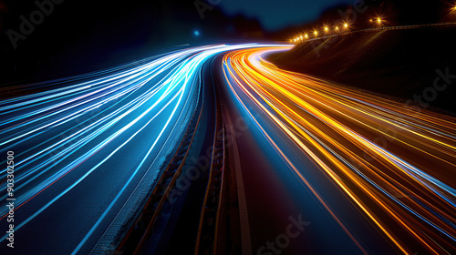 Obraz premium A highway at night with long exposure lights