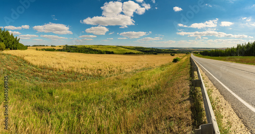 © YuNIK, Fototapeta premium A highway passing through a hilly area.