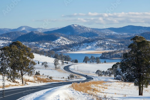 © Seema Designs, Obraz premium A Highway Passing Through a Snowy Mountain Landscape