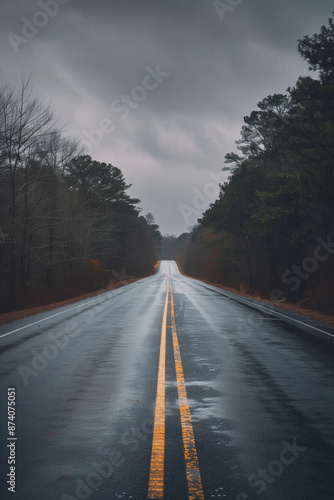 Fototapeta premium A highway stretching into the distance, flanked by trees under an overcast sky