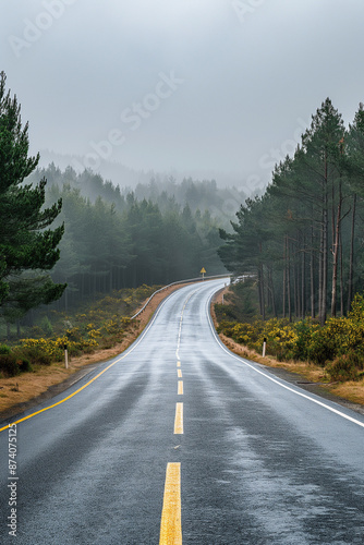 © ZAY WIN HTAI, Fototapeta premium A highway stretching into the distance, flanked by trees under an overcast sky