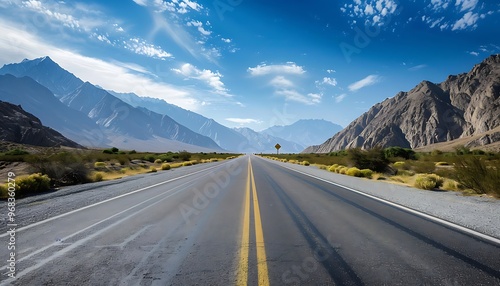 Fototapeta premium A highways road leading to mountains under the blue sky
