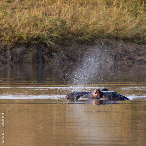 © Jurgens, Fototapeta premium a hippo spraying water in the waterhole