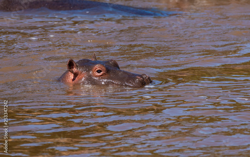Fototapeta premium A hippo swimming in the waters of Mara river inside Masai Mara National Park during a wildlife safari