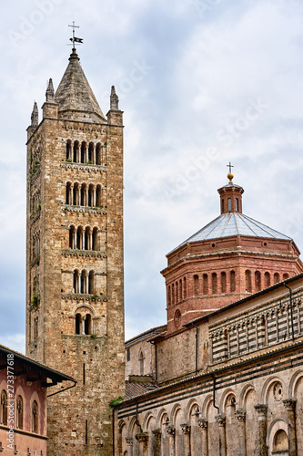 Fototapeta premium A historic church with a bell tower in the city of Massa Maritima in Tuscany...
