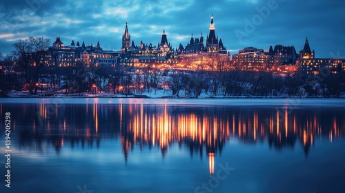 Fototapeta premium A historic city skyline under soft light, blending past and present in a...