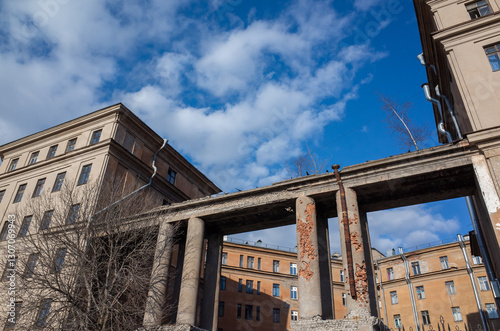 © evannovostro, Obraz premium A historic damaged building with rusticated architectural details