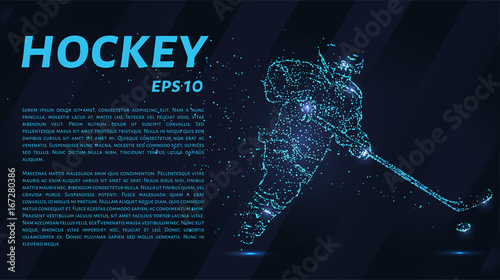 Naklejka premium A hockey game consists of points. Particles in the form of a hockey player on...