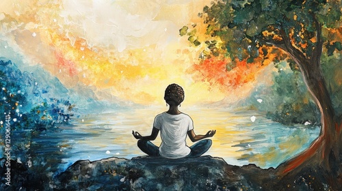 © wicha, Obraz premium A holistic practitioner offering a guided meditation session, focusing on breathwork and visualization to heal emotional wounds