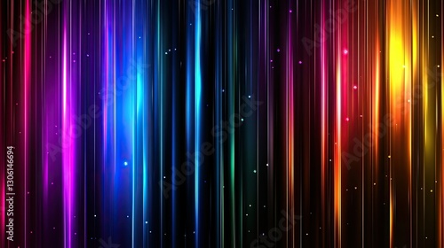 © LADDAWUN SONMUANG, Naklejka premium A holographic 3D abstract background with floating, prismatic panels shifting through a rainbow spectrum.