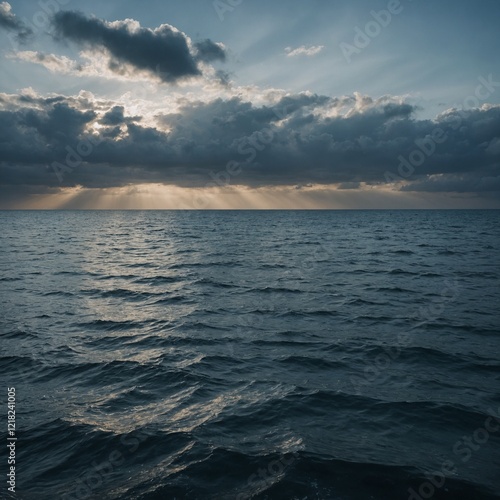 © Pakhtoon, Obraz premium A horizon blending sea and sky with no visible land.A