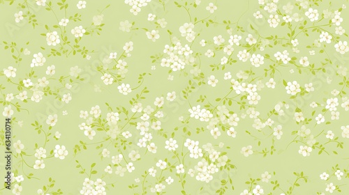 © Purple Penguin GFX, Fototapeta premium a horizontal image of graphic white flowers on a pale lime green background for mock-up, and produt presentation in a Commercially-themed image as a JPG horizontal format. Generative AI