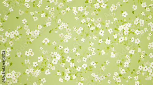 © Purple Penguin GFX, Fototapeta premium a horizontal image of graphic white flowers on a pale lime green background for mock-up, and produt presentation in a Commercially-themed image as a JPG horizontal format. Generative AI