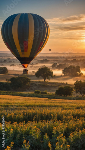 © danny, Obraz premium a hot air balloon festival at sunrise.