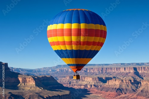 Fototapeta premium A hot air balloon floating over a canyon at sunrise, offering a breathtaking...