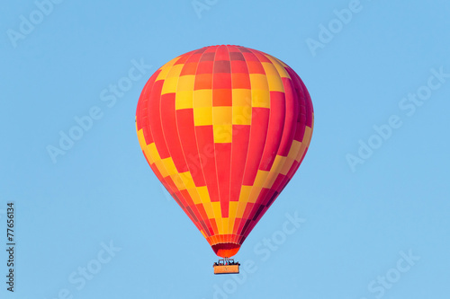 © tanarch, Naklejka premium A hot air balloon flying on a clear sky day.