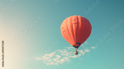 © Zape, Fototapeta premium A hot air balloon in flight on a sky blue background.