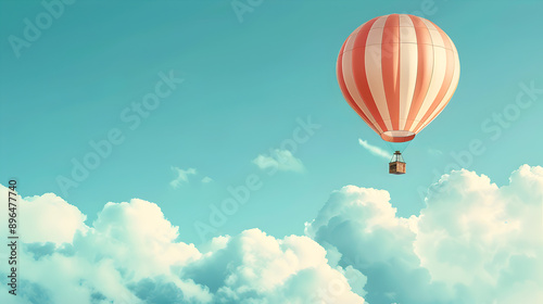 Fototapeta premium A hot air balloon in flight on a sky blue background.