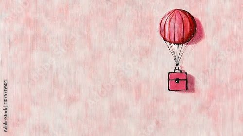 Obraz premium A hot air balloon with a pink suitcase and pink background