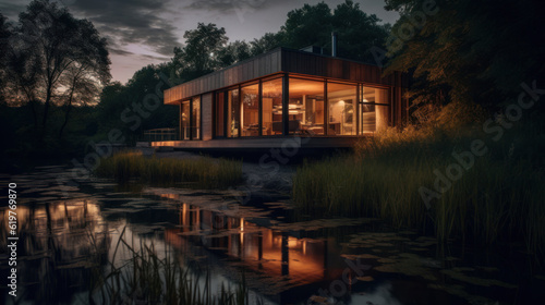 Fototapeta premium A house in nature by a river