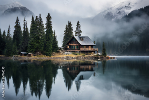 © Canvas Alchemy, Fototapeta premium A house on a small island in the middle of a lake