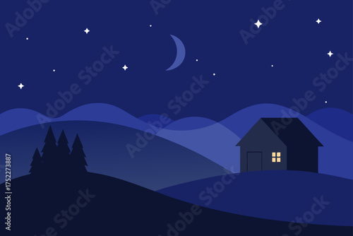 © NURNABI, Fototapeta premium A house under the moon and stars in the night sky