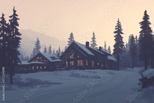 © jr-art, Fototapeta premium A house with a large porch and a driveway in front of it
