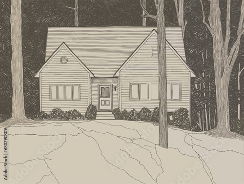 Fototapeta premium A House With Trees In The Background - For sale board outside dream family home